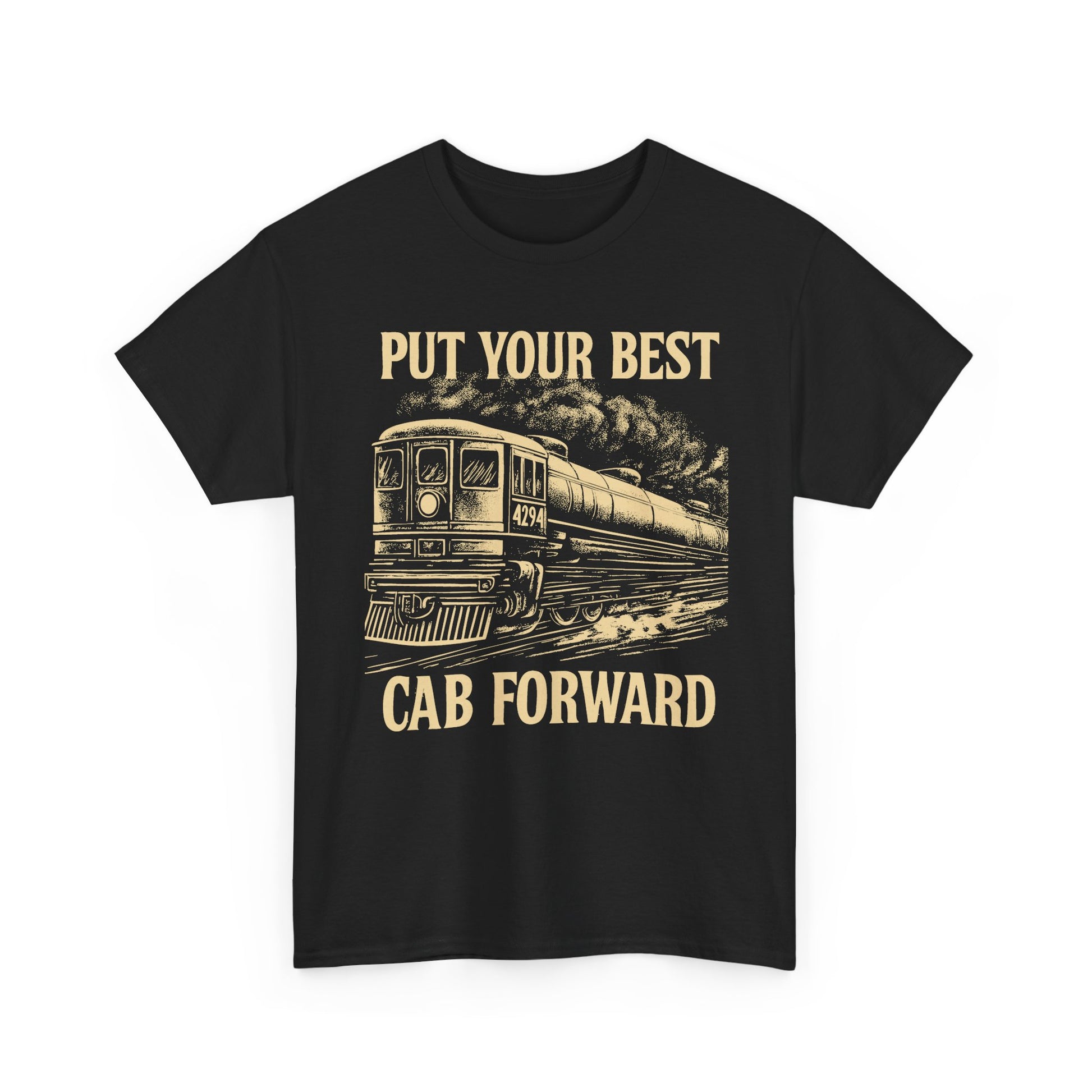 Vintage Train Graphic Tee - Put Your Best Cab Forward, Steam Engine T-Shirt, Railway Lover Gift, Retro Train Apparel, Unisex Cotton Tee